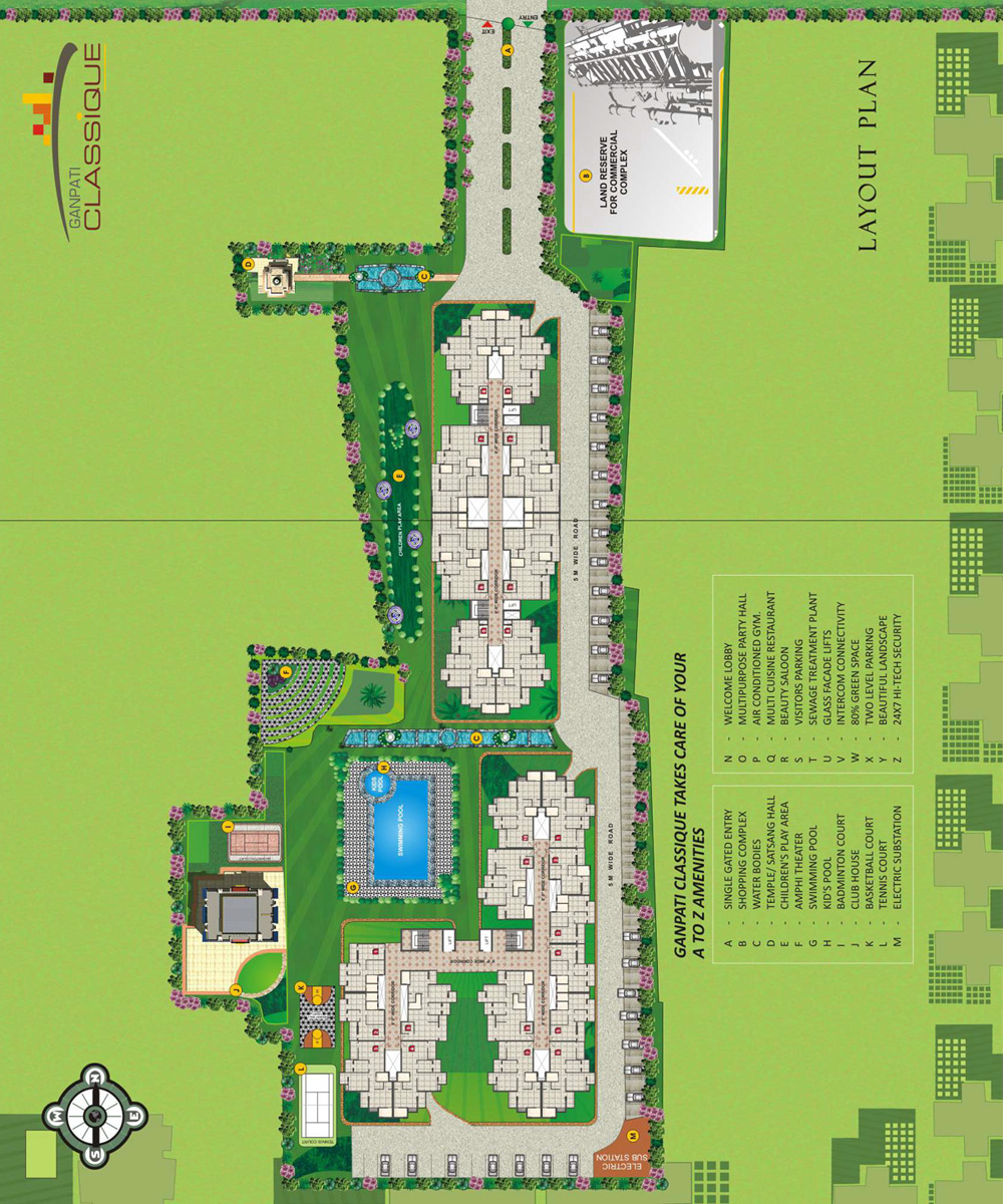 The lush greenery, fresh air and fragrance of flower is insured which is blessing in the present time of pollution. The most striking feature of this project is its elegance, sophistication and class. It is a synonym of classic life style not for everyone, but only you the special ones. The apartment designed to give you ample space. comfort and functionality: Well equipped with most modern amenities ‘Ganpati Classique’ will make you feel “Class Apart”.