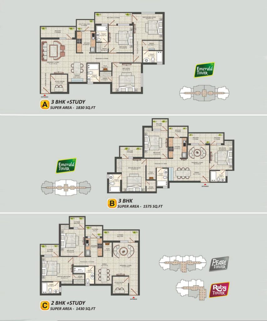 The three towers are surrounded with badminton court, kids play area, amphitheater, tennis court, basket ball court, and landscaped garden, club house, temple, 2 swimming pools (for adult & kids) are otherfacilities you can avail. Electric substation and lifts are equipped with latest technology assuring.